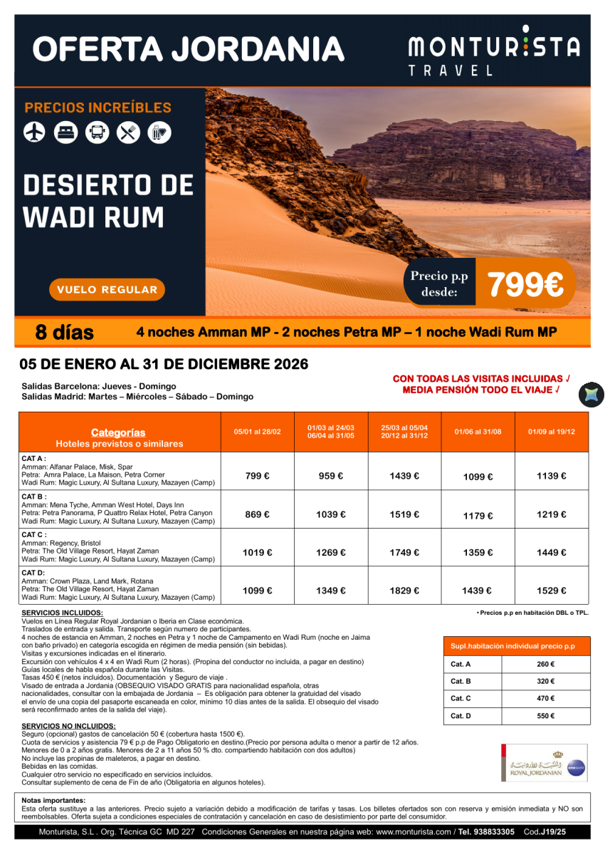 JORDANIA-Descubre Wadi Rum**desde 799€- 8 días 4n Amman mp - 2n Petra mp -1n Wadi Rum mp con visitas incluidas